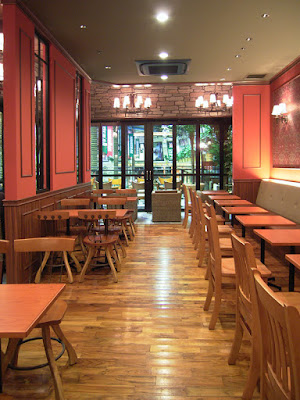 階下のガーデニングコーナーを見下ろす立地。、これを活かし「南国のリゾート」をイメージしてデザインしました。今回も「ちょっと違うタリーズ」を楽しんで頂けると思います。