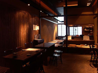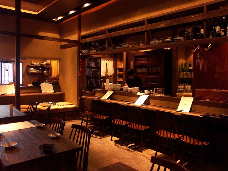 木場の銘木屋さんで探した材ですが、白タイルと相まって、元氷屋さんの店舗空間に違和感無く収まっています。