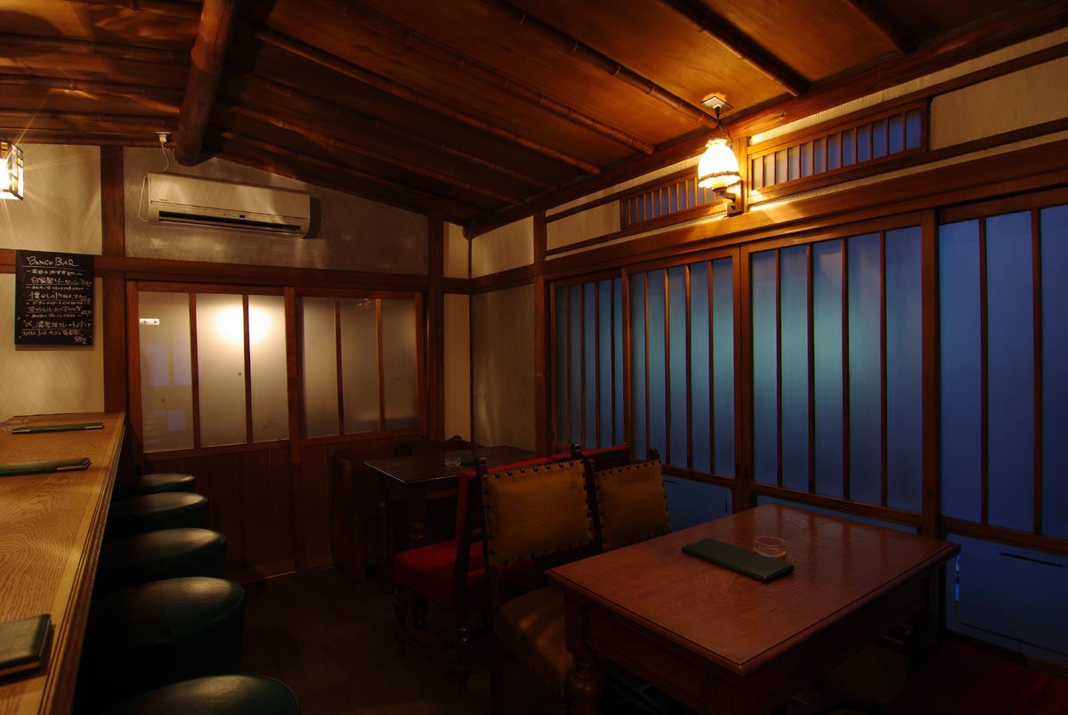 この二階部分は和室でしたので、バックカウンターは元は「床の間」です。