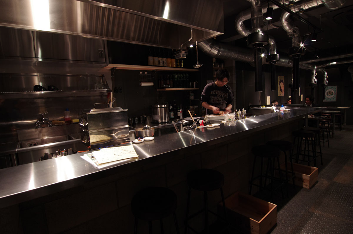 「素のジビエを頂く」という私の中のイメージからコンクリートブロックやステンレス、白ガス管などの素材を使用しています。